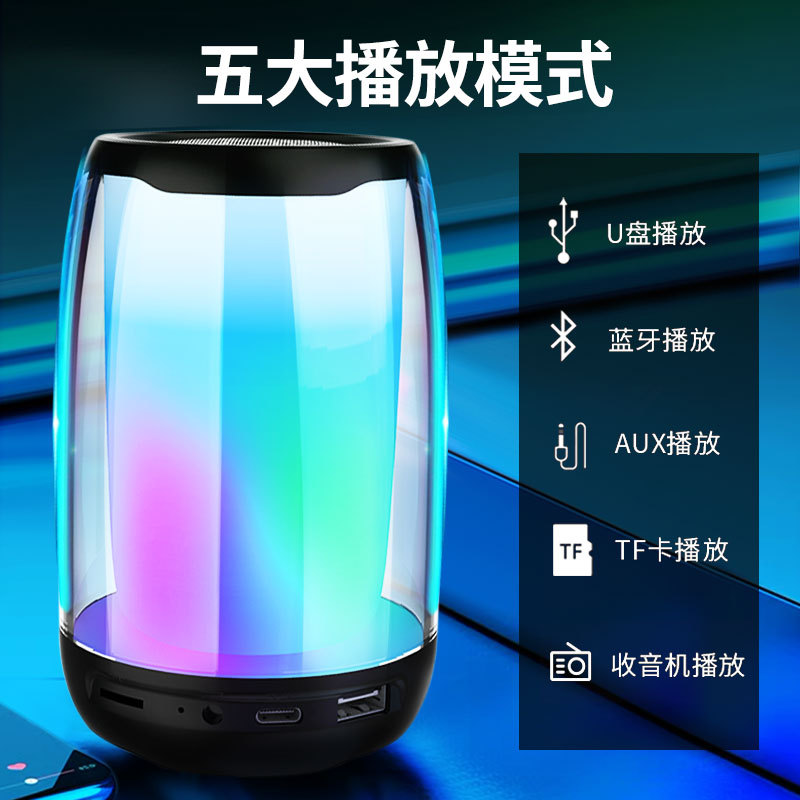 智能炫彩灯脉动家用蓝牙音响便捷式小型超重低音炮车载无线小音箱