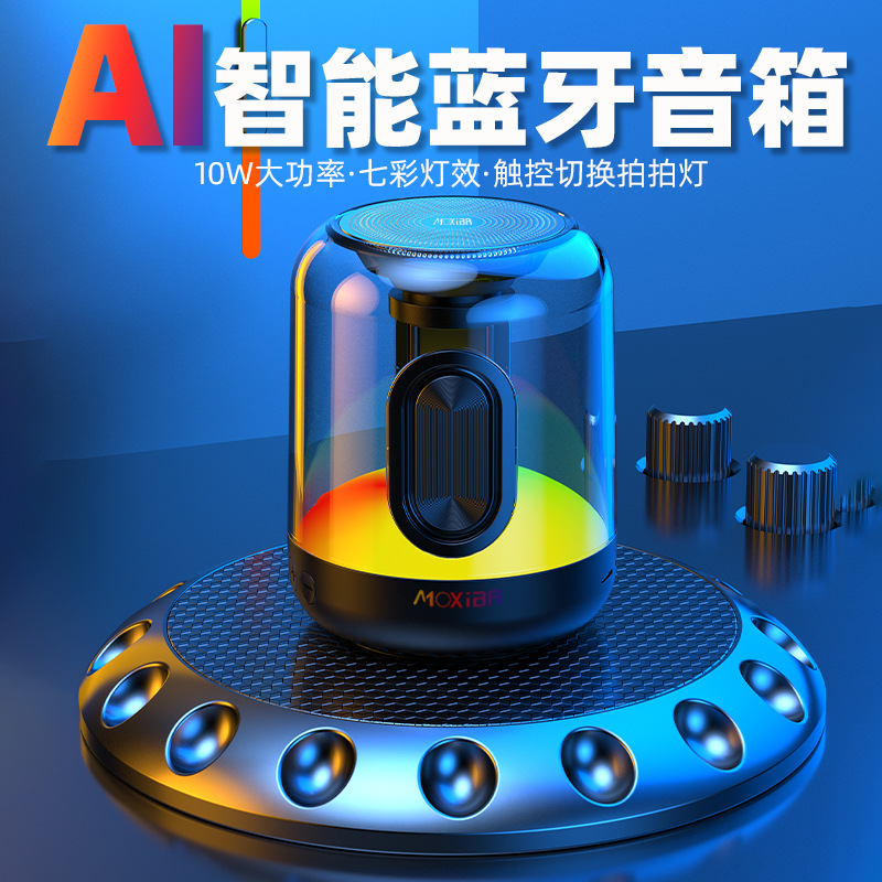 AI智能对话人工语音控制多功能可无线充电蓝牙音响带感应灯